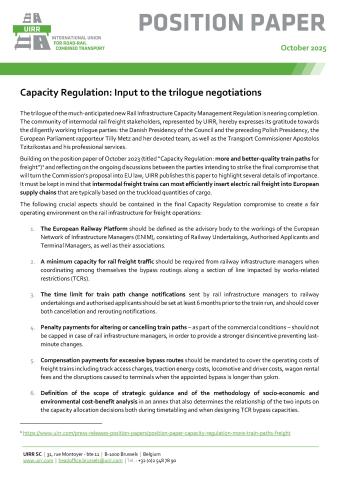 Building on the position paper of October 2023 (titled “Capacity Regulation: more and better-quality train paths for freight”)* and reflecting on the ongoing discussions between the parties intending to strike the final compromise that will turn the Commission’s proposal into EU law, UIRR publishes this paper to highlight several details of importance. It must be kept in mind that intermodal freight trains can most efficiently insert electric rail freight into European supply chains that are typically based on the truckload quantities of cargo.